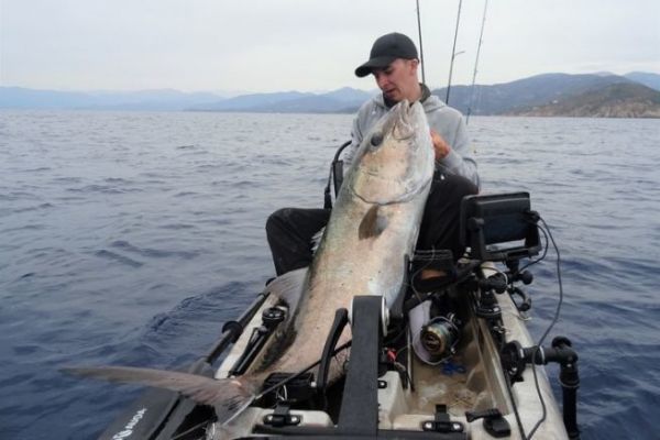 Achtung: Fahren Sie niemals mit Ihrem Kajak schräg und mit einer zu stark angezogenen Bremse, da Sie sich sonst umdrehen und sich zu den Fischen gesellen könnten, wenn der Raubfisch beschließt, nicht nachzulassen.
