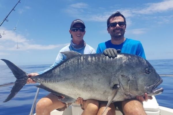 Der GT verdankt seinen Ruf seinen Oberflächenangriffen. Er umschleicht die Riffe unter den Füsilierschwärmen und stürzt sich unter seiner Beute an die Oberfläche, was enorme Wasserexplosionen erzeugt. Die Angriffe sind spektakulär und die Angler interessieren sich sehr für diesen Superraubfisch.