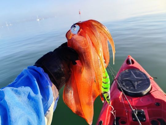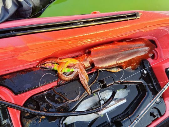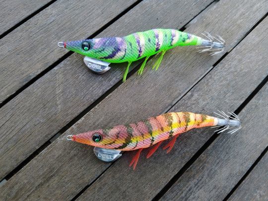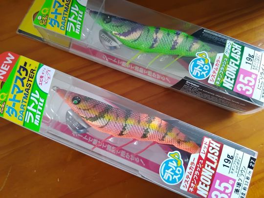 Die EZ-Q Dartmaster Rattle sind Jigs mit einem sehr schönen Finish. Ich konnte heute Morgen eine Session machen und die Bedingungen waren Ebbe und Flut mit einem Koeffizienten von 98. Durch die Regenfälle der letzten Tage war das Wasser grün und trüb. Ich begann meine Session mit meiner üblichen Tataki-Montage. Ein einziger Tintenfisch in fast einer Stunde Angeln. Dann ersetzte ich meinen unteren Jig durch diesen Dartmaster in grüner Farbe, schnelle Animation, indem ich das Blei auf den Grund klopfte und mehrmals jerkte, um die rauschenden Kugeln zum Klingen zu bringen. Mehrere Tintenfische, darunter einige hübsche, und zwei Tintenfische stachen in der nächsten Stunde zu.