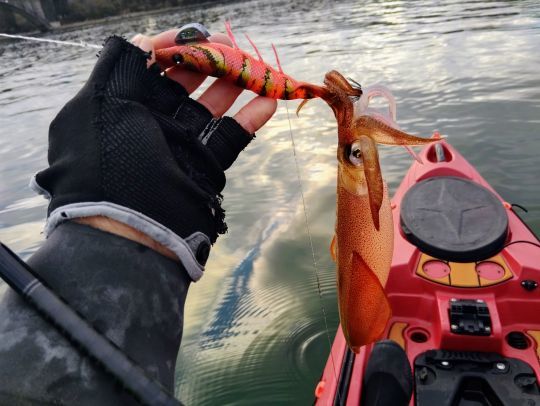 Alles fing ziemlich gut an, ein Start auf meiner lokalen Slipanlage neben dem Ruderclub für eine weitere Testsitzung mit 2026er Jigs. Mein Alboran FX3 war mit dem Ultra STG EVO Motorkit ausgestattet, meine Lithiumbatterie hinter dem Sitz. Das Wasser war von oben bis unten flach, die Sicht ausgezeichnet. Nach zwei Stunden Angeln mit Tintenfisch und ziemlich vielen Sepien driftete ich mit abgestelltem Motor, ruhig, gemütlich, gegenüber der Brücke in der mittleren Fahrrinne, das Wasser war zwischen 7 und 8 °C warm, die Sonne begann endlich, durch die Wolken zu brechen und ich dachte, dass ich gegen Mittag ein Picknick in der Sonne machen könnte... Und das ist der Zwischenfall...