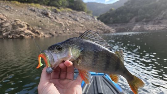 Beim Barschangeln mit dem Kajak werden kleine schwimmende Fische, Spinner oder Mikro-Jigs verwendet, die linear eingeholt werden.
