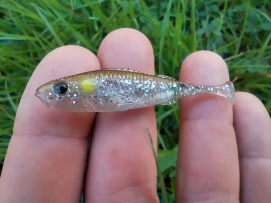 Ich beschloss, das Äußerste zu tun und den kleinsten Köder, den ich bei mir hatte, an meine Spitze zu knoten: das Mini-Paddle von Sico-lure in der neuen Farbe Ayu. Es ist genau 58 mm lang und hat, wie der Name schon sagt, ein sehr kleines Caudal, das eine sehr feine Vibration erzeugt.