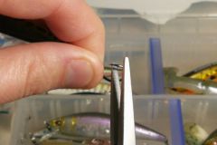 Außerdem muss darauf geachtet werden, dass der Haken genügend Bewegungsfreiheit behält. Er darf weder das Schwimmen des Köders behindern, noch darf er sich in seinem Körper oder in einem anderen Haken verheddern können.