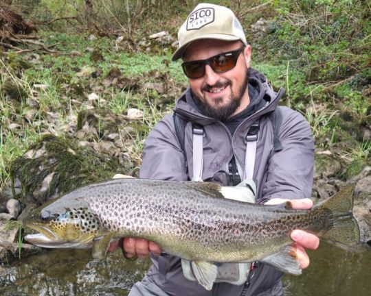 Ich komme aus einer Fischerfamilie, also habe ich schon sehr früh angefangen. Mein Großvater war Fischer, genau wie mein Vater und meine Onkel, also war ich schon sehr früh am Wasser. Jai wurde wirklich darin gebadet. Selbst bei Familienessen war das Angeln immer präsent. Ich begann mit dem Spinnfischen und bald darauf mit dem Tockfischen. Ich war noch sehr jung und hatte natürlich keine Mittel, aber es war eine billige Art des Angelns. Es ist eine sehr gute Schule, um zu lernen, einen Fluss zu lesen und die Position der Fische zu kennen. Diese Fischerei ermöglicht es auch, die Ernährung der Forellen zu entdecken, denn vor dem eigentlichen Angeln gibt es die Suche nach Ködern. Dann habe ich das Angeln mit der manuellen Elritze probiert, was mich zum Angeln mit dem schwimmenden Fisch übergehen ließ. Weniger umständlich, da die Problematik des Fangens und Aufbewahrens der Elritzen entfiel.